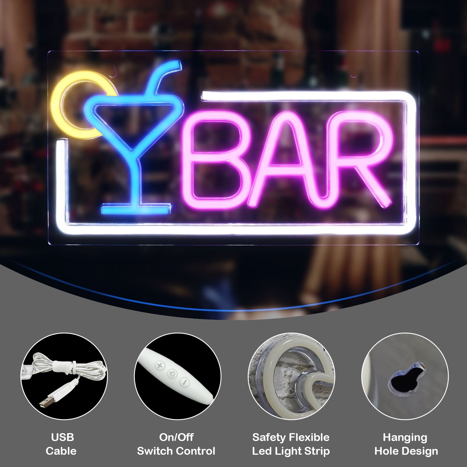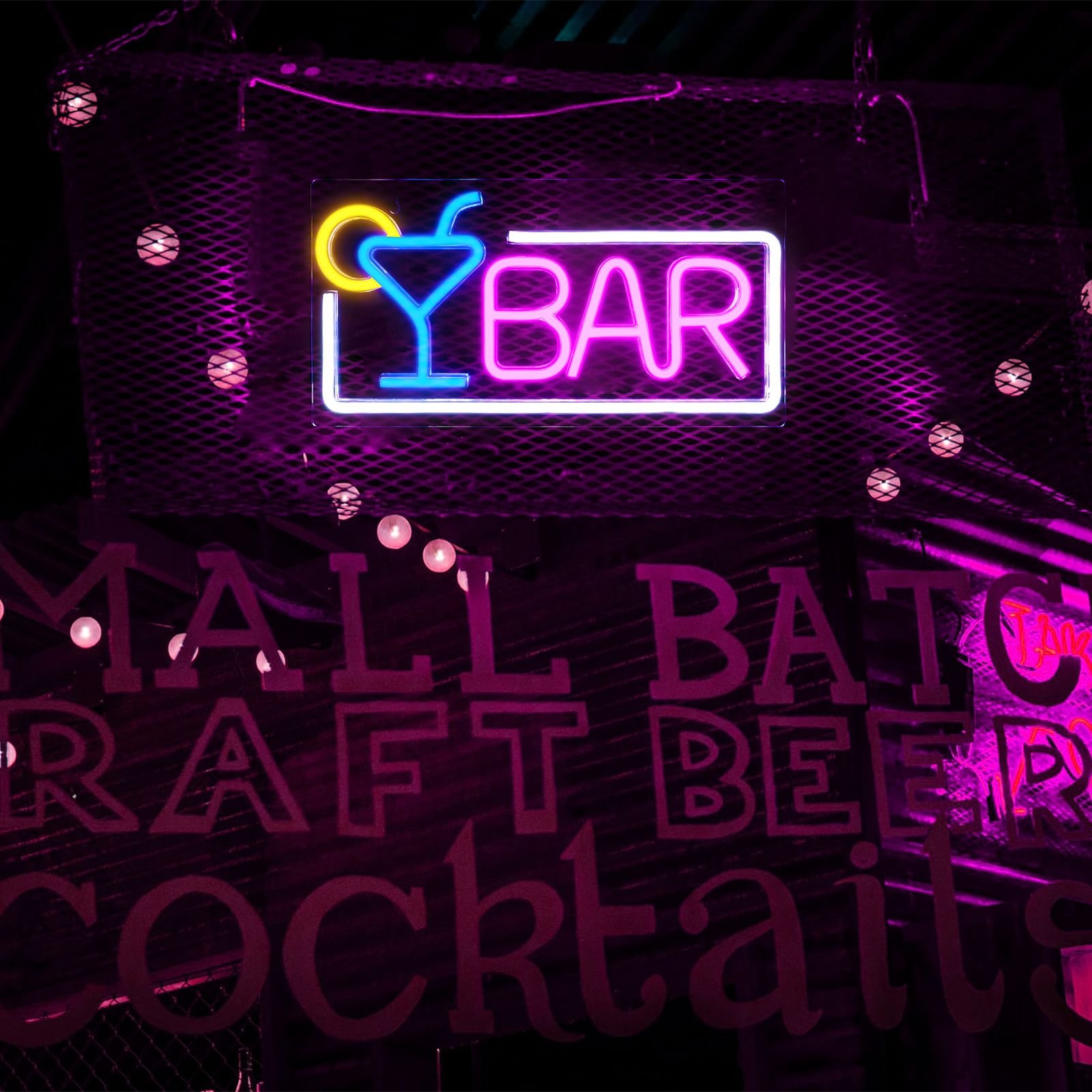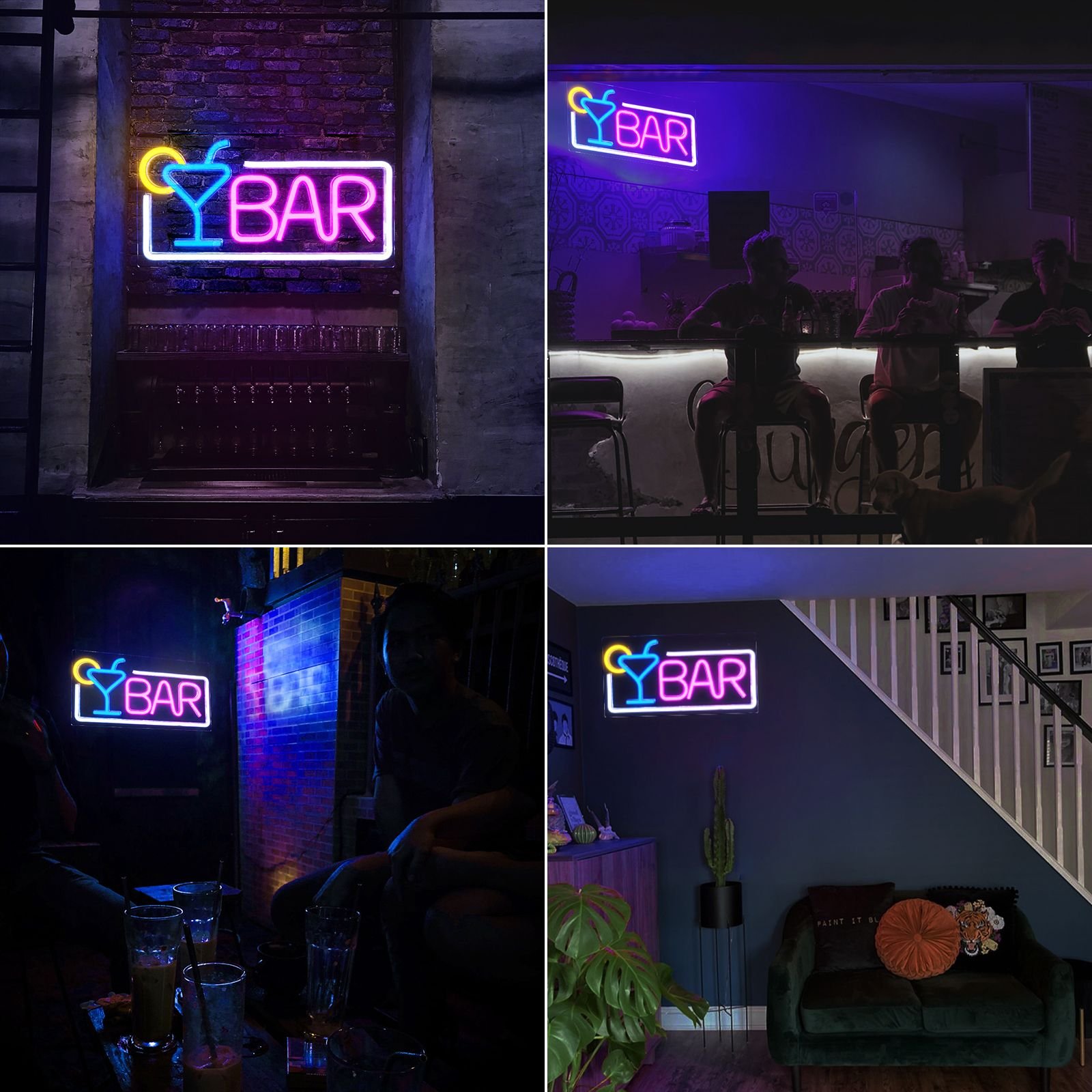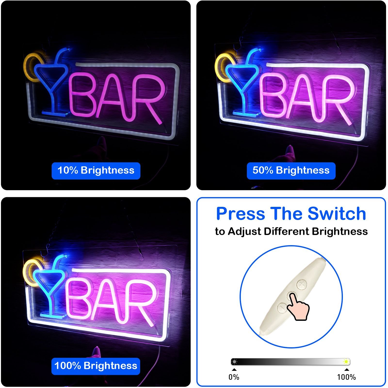 Premium & Safety & Energy Saving:This neon bar signs for bedroom are made of soft unbreakable neon tube and acrylic board, making the light transmittance extremely strong, and the light is soft and uniform. This bar neon signs for home bar decor using the newest technology of LED flexible tube to create this masterpiece with dimmer and switch.