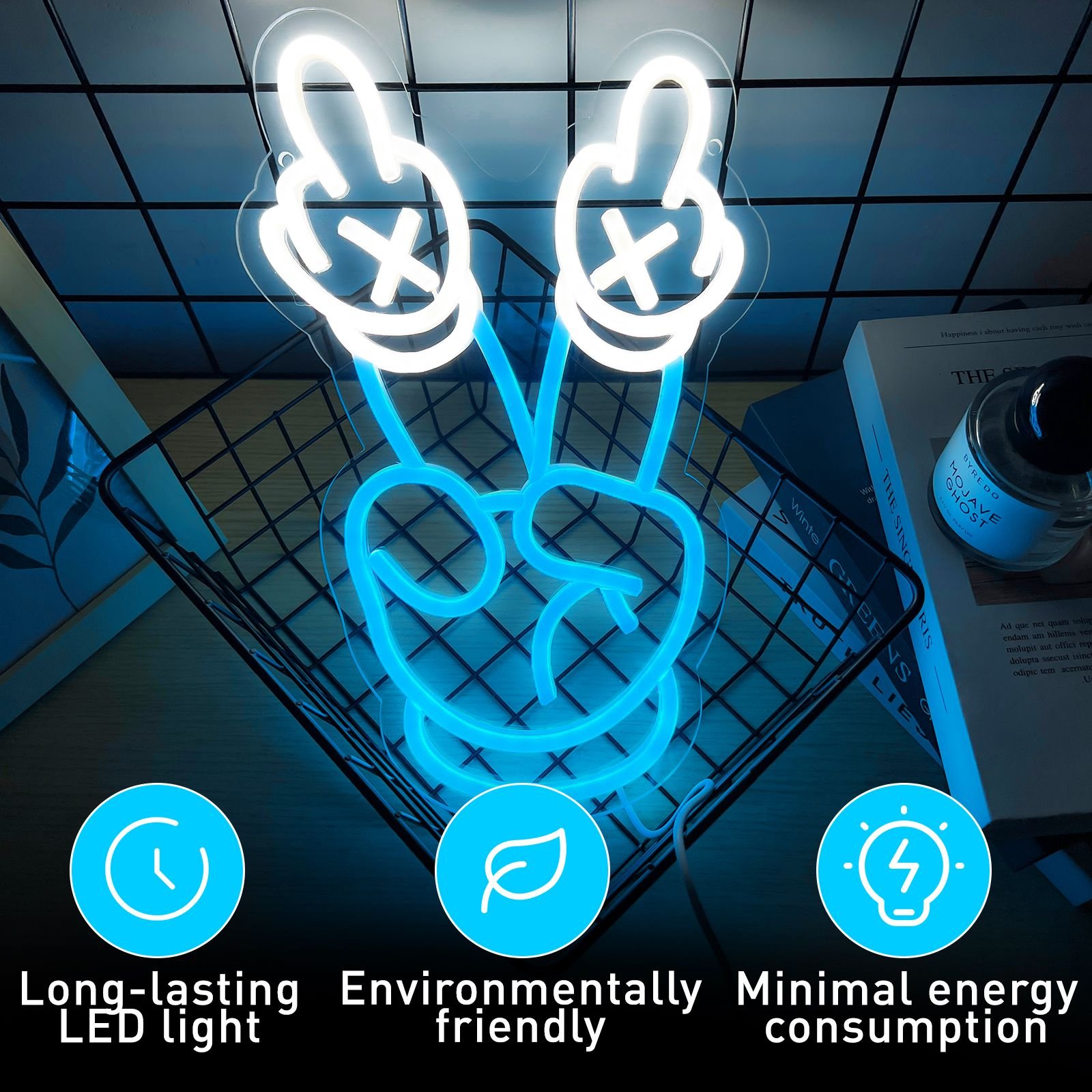 Gesture led light sign:Cartoon fist gesture design with unique design,the neon signs are perfect for your wall decor,can make your room more charming.Our neon sign must the beautiful and unique gift.The "Victory Gesture" neon light can be used for game room, bedroom, bar, dormitory, shop, living room or game zone decoration.