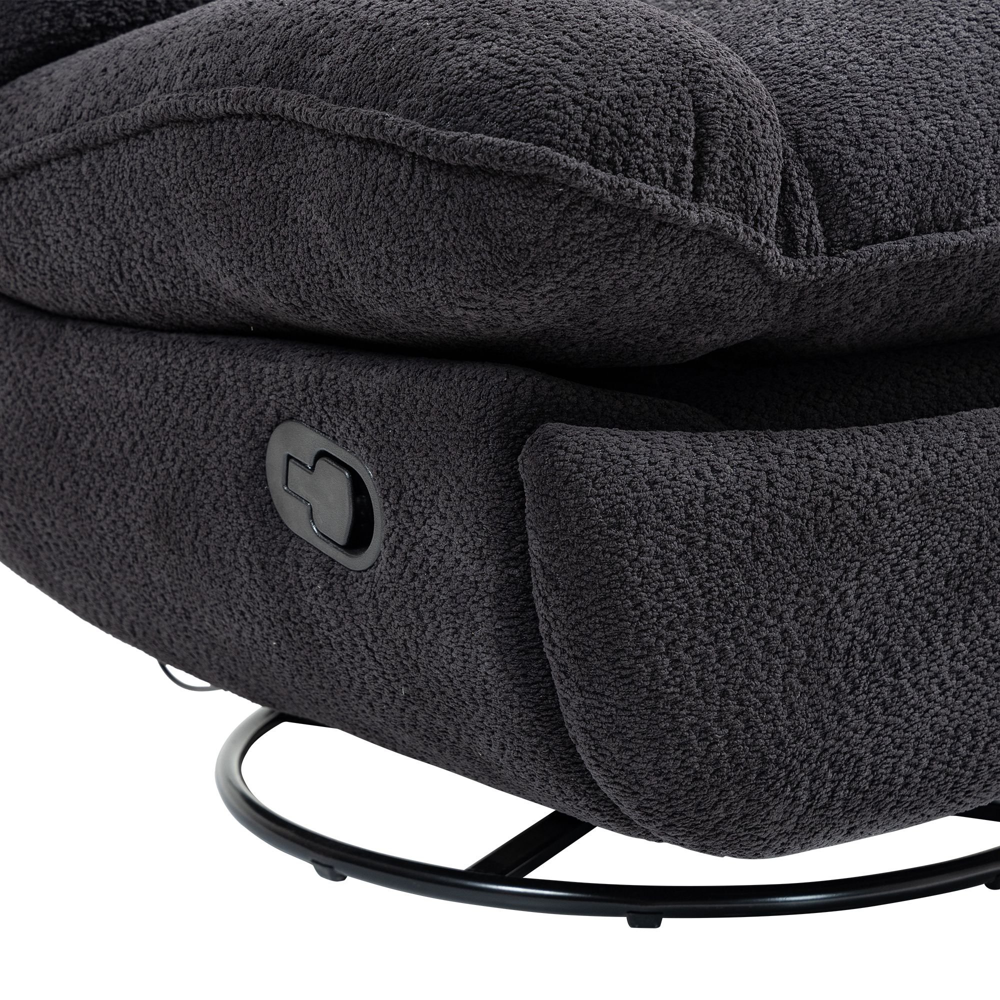 360° Swivel Recliner Adjustable Chair Chenille Glider Swivel Reclining Sofa Chair with Black Metal Round Base - Black