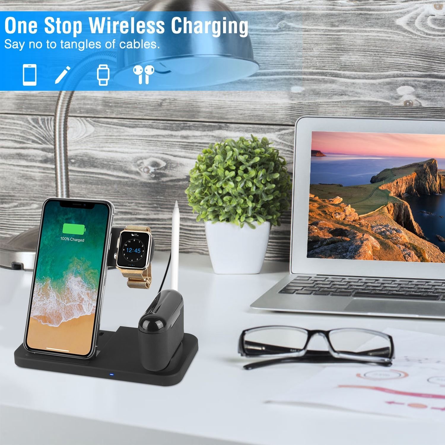 *Easy To Use*:No need to keep track of multiple cords and cables; which often get lost or broken. A single 4 in1 wireless charging station replaces them all simply by placing all your devices on the charger.