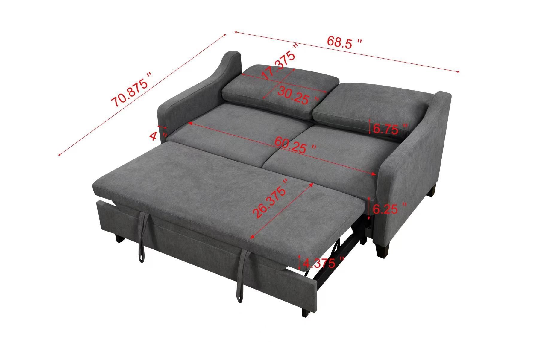 CONVERTIBLE PULL-OUT SOFA BED:This sofa is equipped with a pull-out bed, which can be pulled out with 2 auxiliary hand straps to easily and quickly convert the loveseat into a chaise longue or a sleeping bed. Not only can it meet your needs for watching TV, playing games, or taking a break, but it can also provide a place to stay for overnight friends. It is very practical for a limited small space.