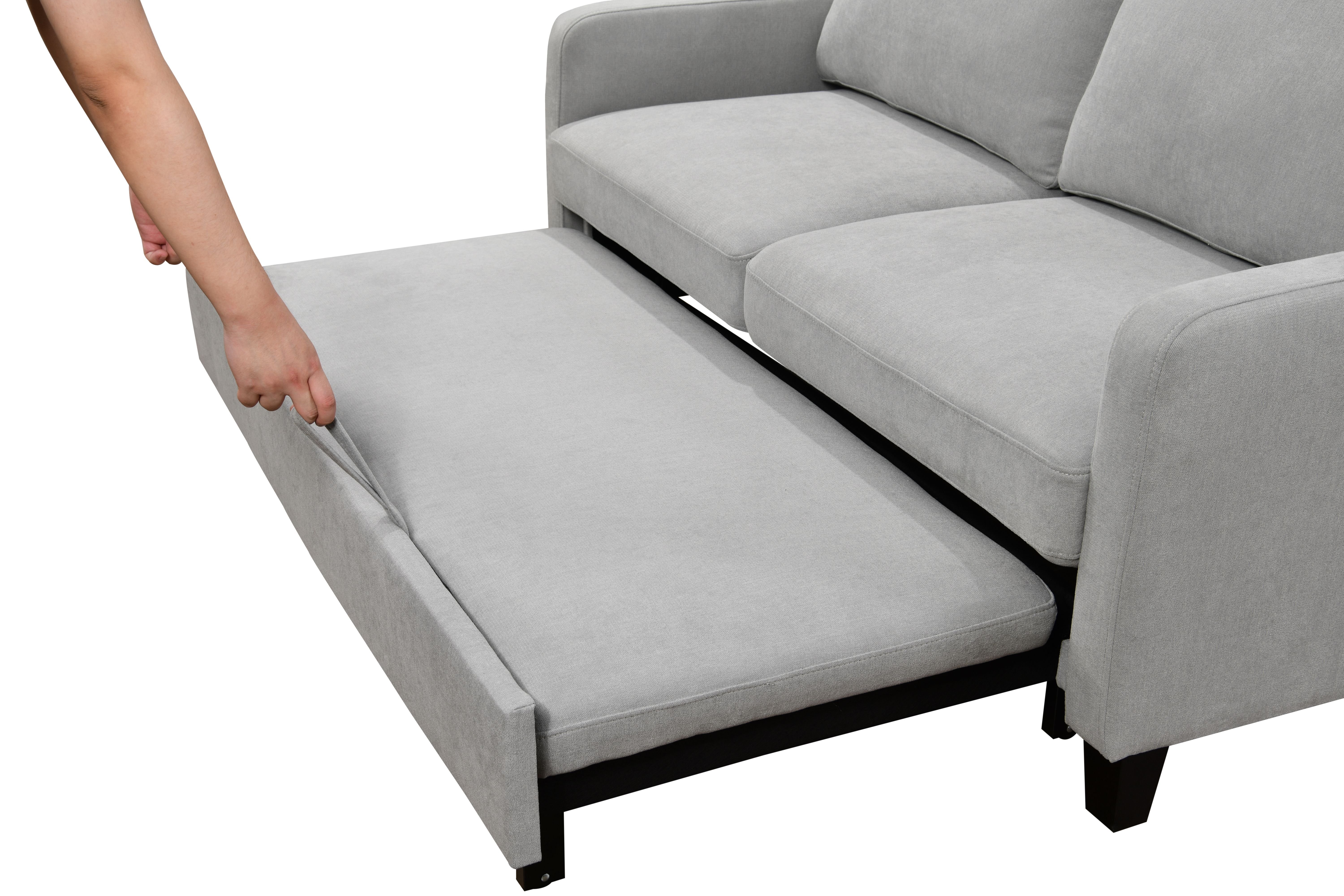 CONVERTIBLE PULL-OUT SOFA BED:This sofa is equipped with a pull-out bed, which can be pulled out with 2 auxiliary hand straps to easily and quickly convert the loveseat into a chaise longue or a sleeping bed. Not only can it meet your needs for watching TV, playing games, or taking a break, but it can also provide a place to stay for overnight friends. It is very practical for a limited small space.