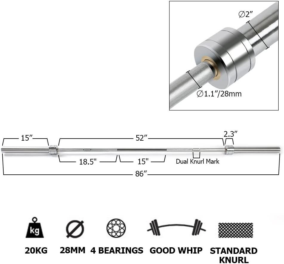 Our Olympic bar is made of high quality steel, with chrome-plated surface, ensure hardness and durability, not easily to rust and wear within normal use. Can support a weight capacity of up to 200lbs / 240lbs / 500lbs / 700lbs.