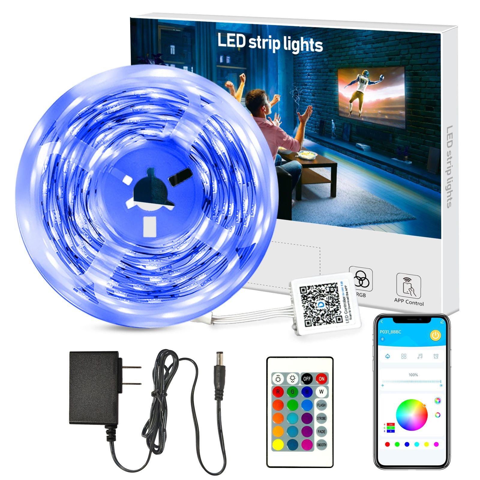 Easy Use: Control the LED strip lights via remote control or app for selecting colors, changing modes, and adjusting brightness.