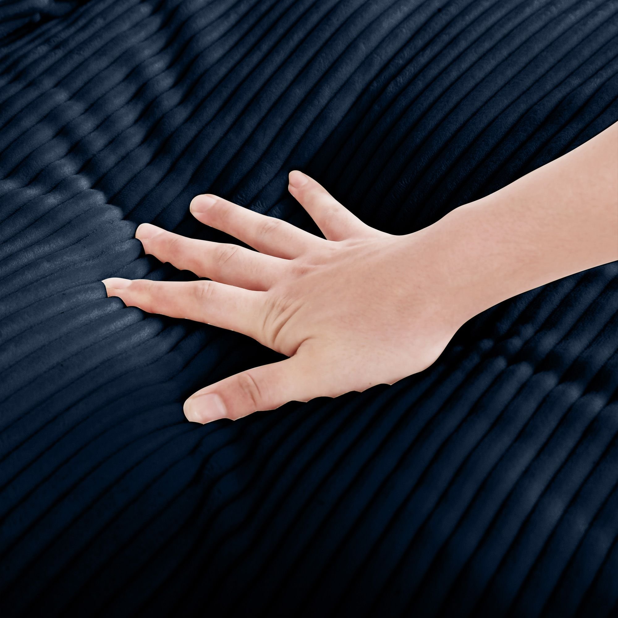 Superior comfort - extended deep seats allows you to sit cozy on the sofa, soft waist pillow to offer excellent support to your waist, ergonomic seat angle eliminating your fatigue of the day and bringing a full sense of security and comfort. Back and seat cushion are upholstered with comfortable high-density foam cushions for ultimate comfort and support.The back cushions and seat cushions are soft and fluffy, and the stripped corduroy fabric gives it a cloud-like wrapping feel.