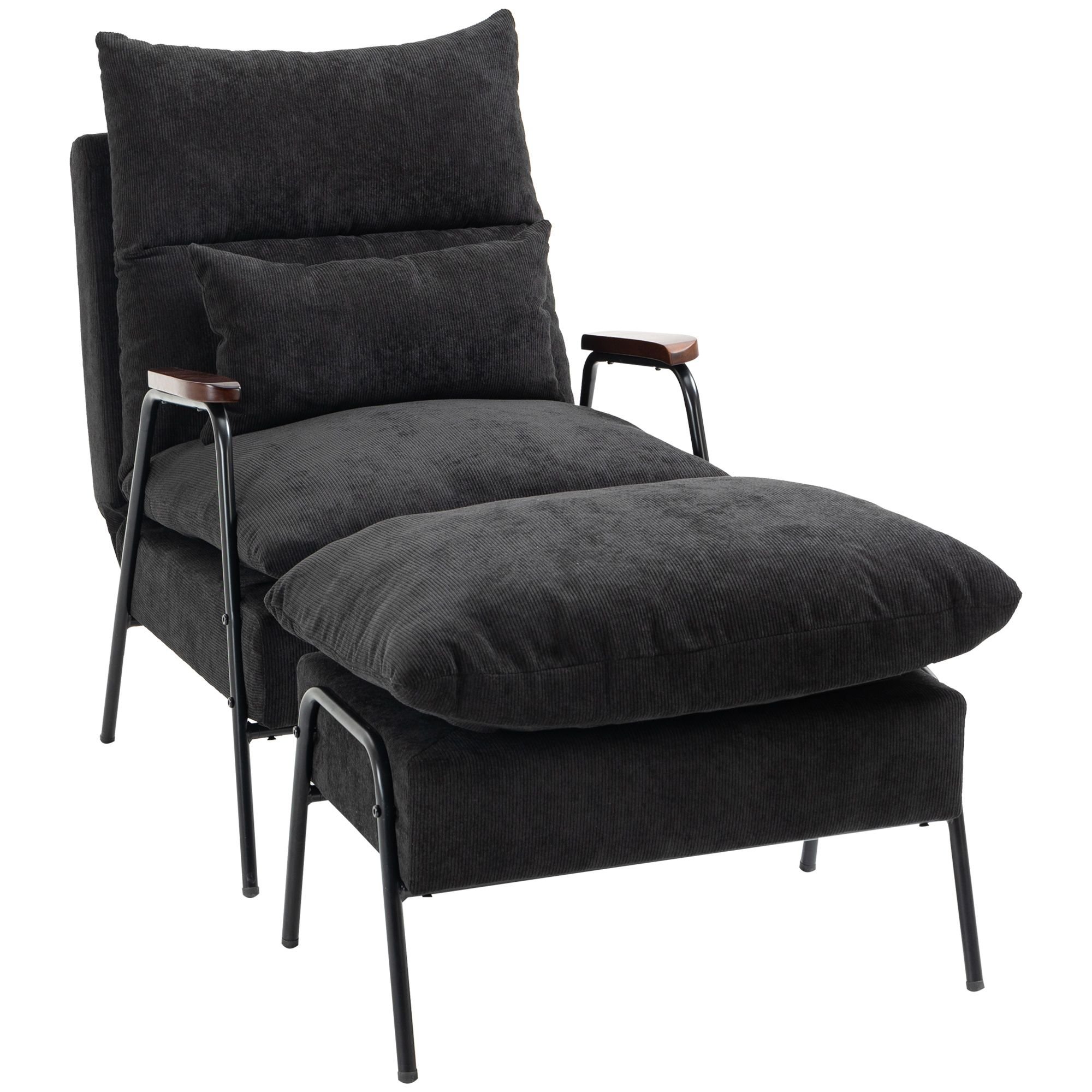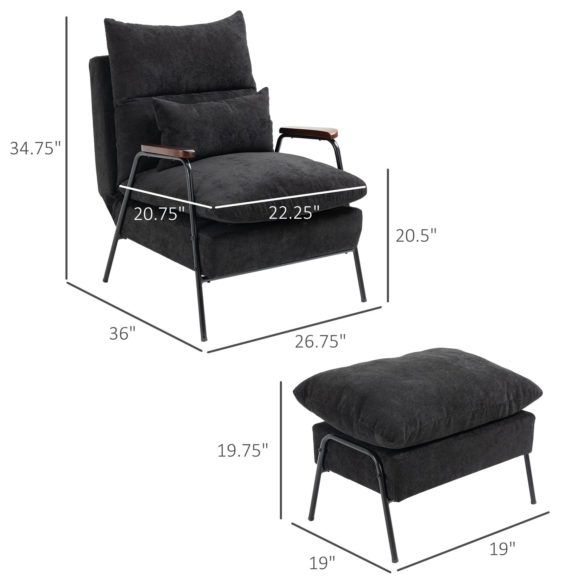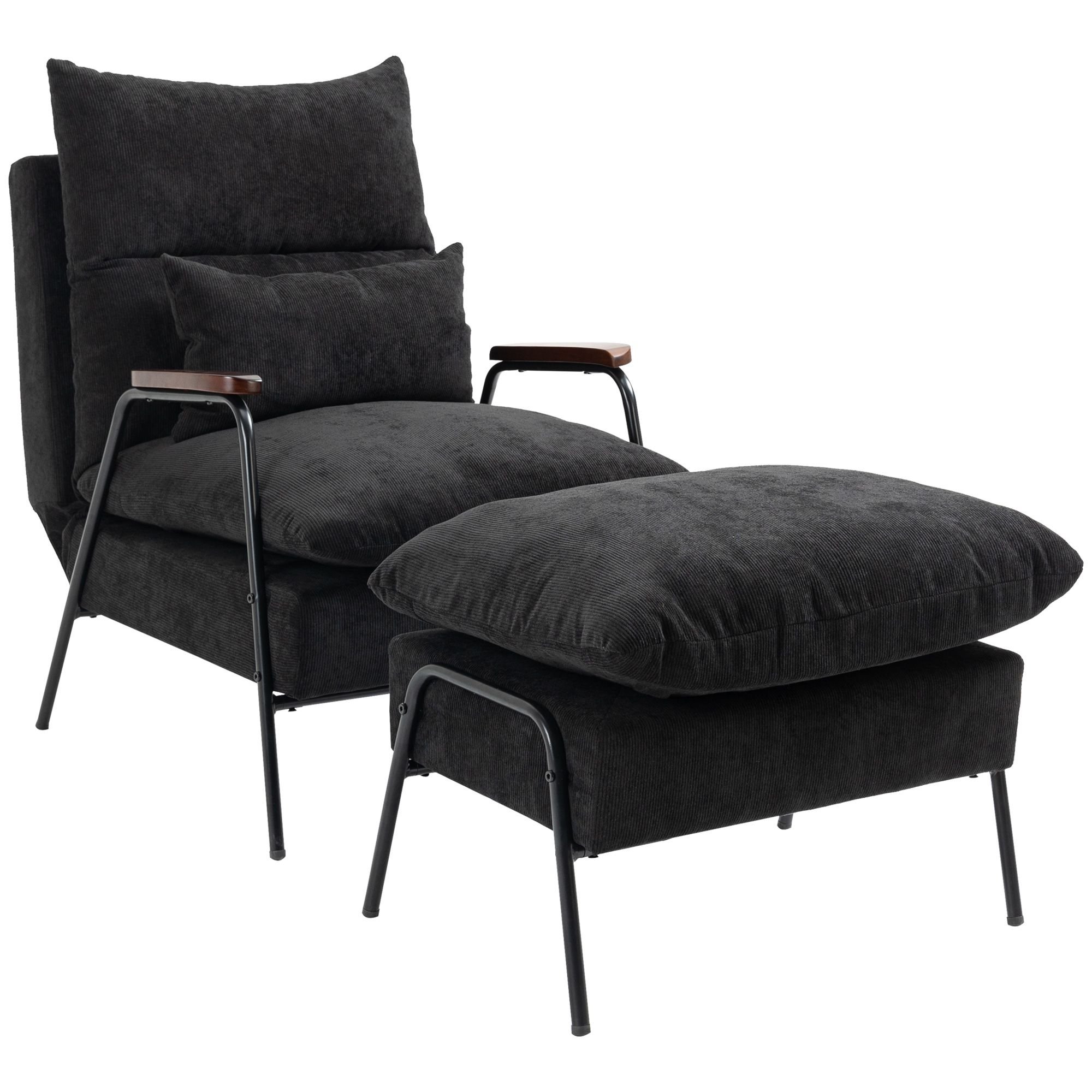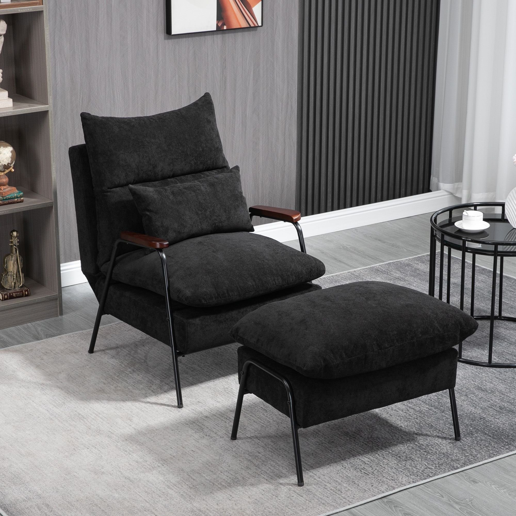 HOMCOM Accent Chair with Ottoman, Reclining Comfy Chair with Adjustable Backrest, Steel Frame and Pillow for Living Room, Bedroom, Black