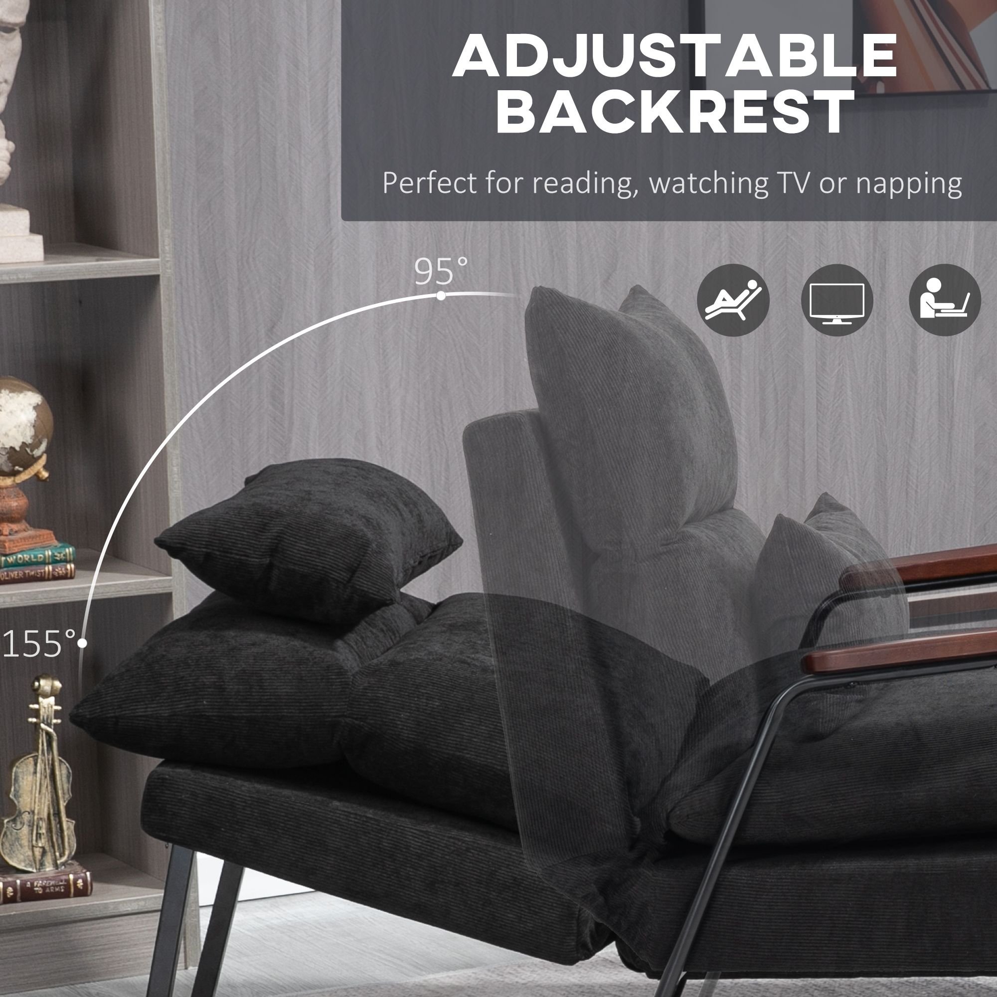 Home > HOMCOM Accent Chair with Ottoman, Reclining Comfy Chair with Adjustable Backrest, Steel Frame and Pillow for Living Room, Bedroom, Black