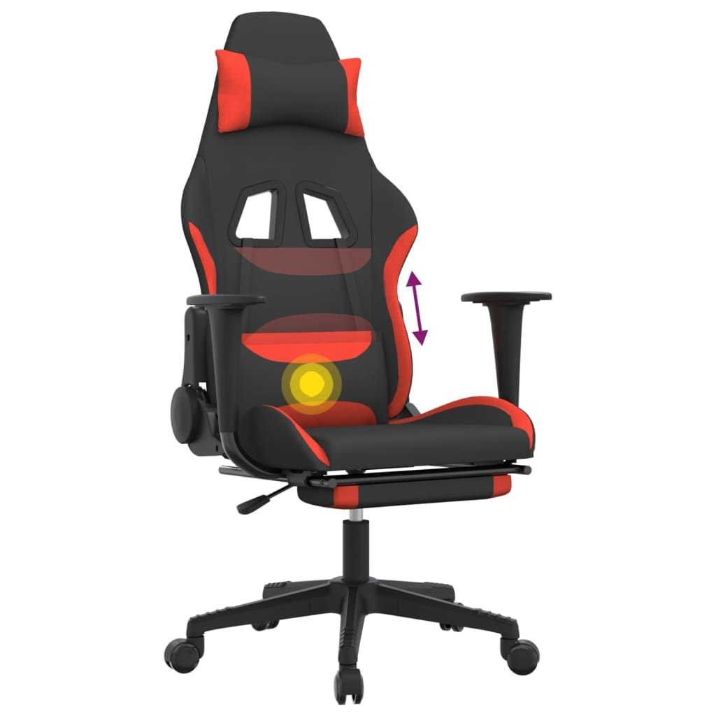 Massage Gaming Chair with Footrest Black and Red Fabric