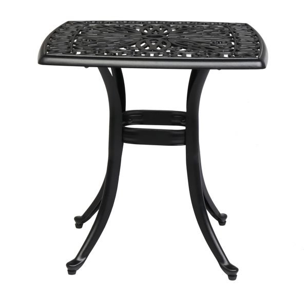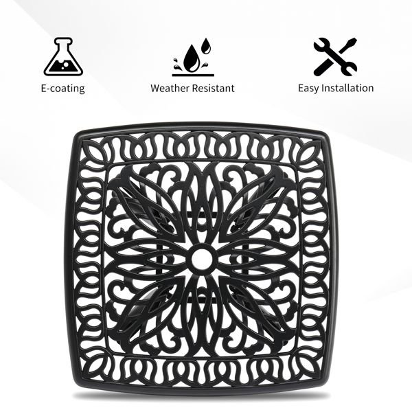 Experience the perfect blend of elegance and durability with the Outdoorr Cast Aluminum Square Table. Designed with a taste for classic styles, this black square table enhances any patio, garden, or balcony setting. The intricately designed tabletop showcases a timeless openwork floral pattern, adding a touch of nobility and vintage charm. This versatile piece can be used as an end table, side table, cocktail table, or even as a chic outdoor bar table, making it ideal for hosting gatherings or simply enjoying a peaceful outdoor moment.