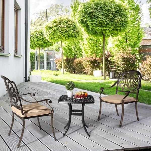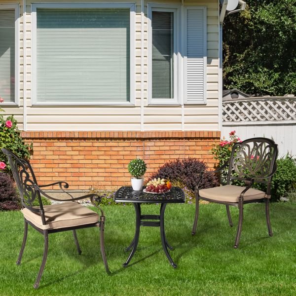 2. Durable Construction: Made from high-quality cast aluminum, this table is robust and built to last, ensuring weather resistance and rust-free longevity.