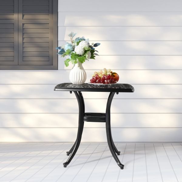 Home > Outdoorr Cast Aluminum Square Table, End Table Side Table for Paio Backyard Pool, Cast Aluminum Cocktail Table, Outdoor Bar Table, Black