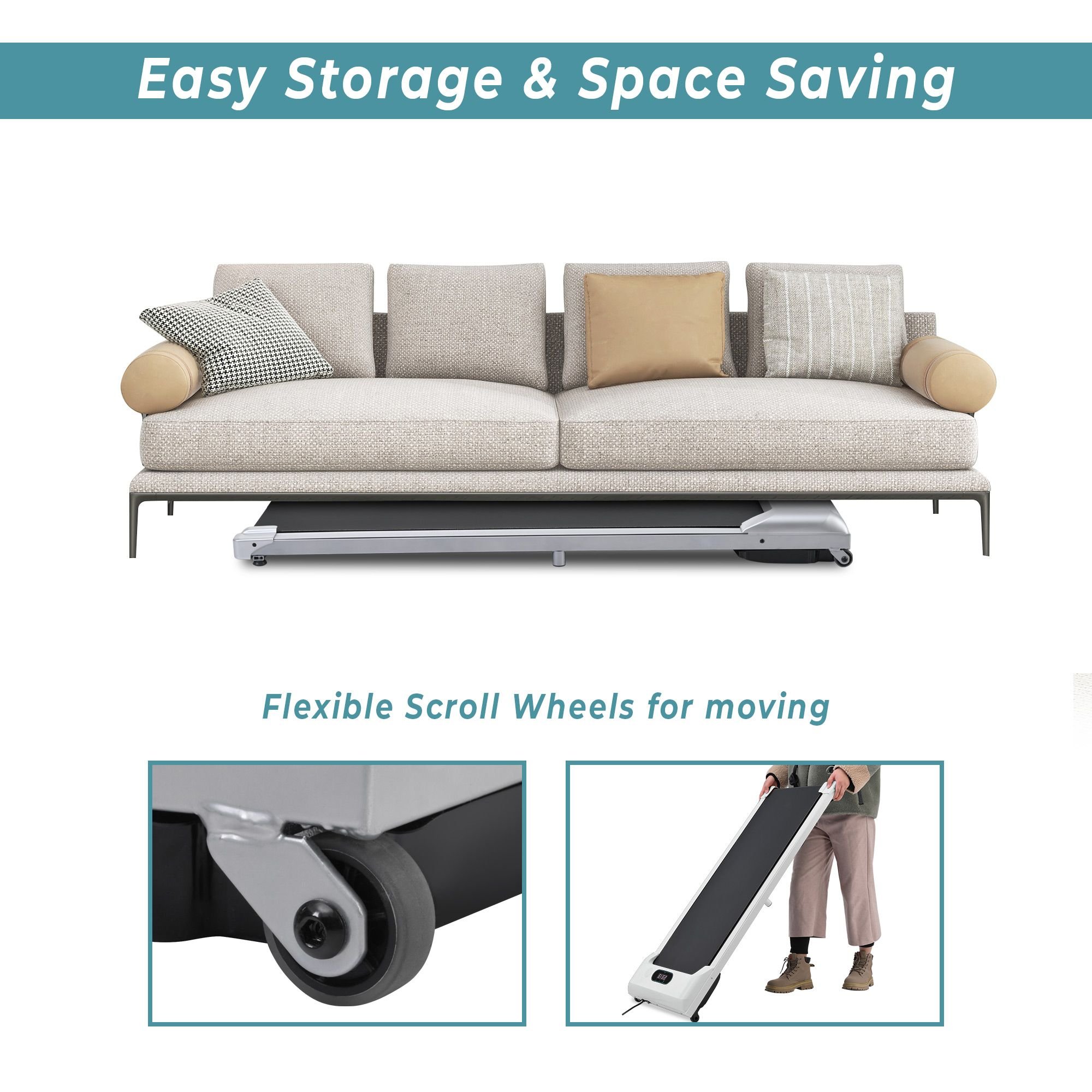 No Assemble & Space-saving: Unlike the traditional treadmills; our walking and running 2 in 1 treadmill is no assemble needed; designed to be lightweight; portable and easy to store under the bed or desk. Wheels at the bottom are for easy transportation.