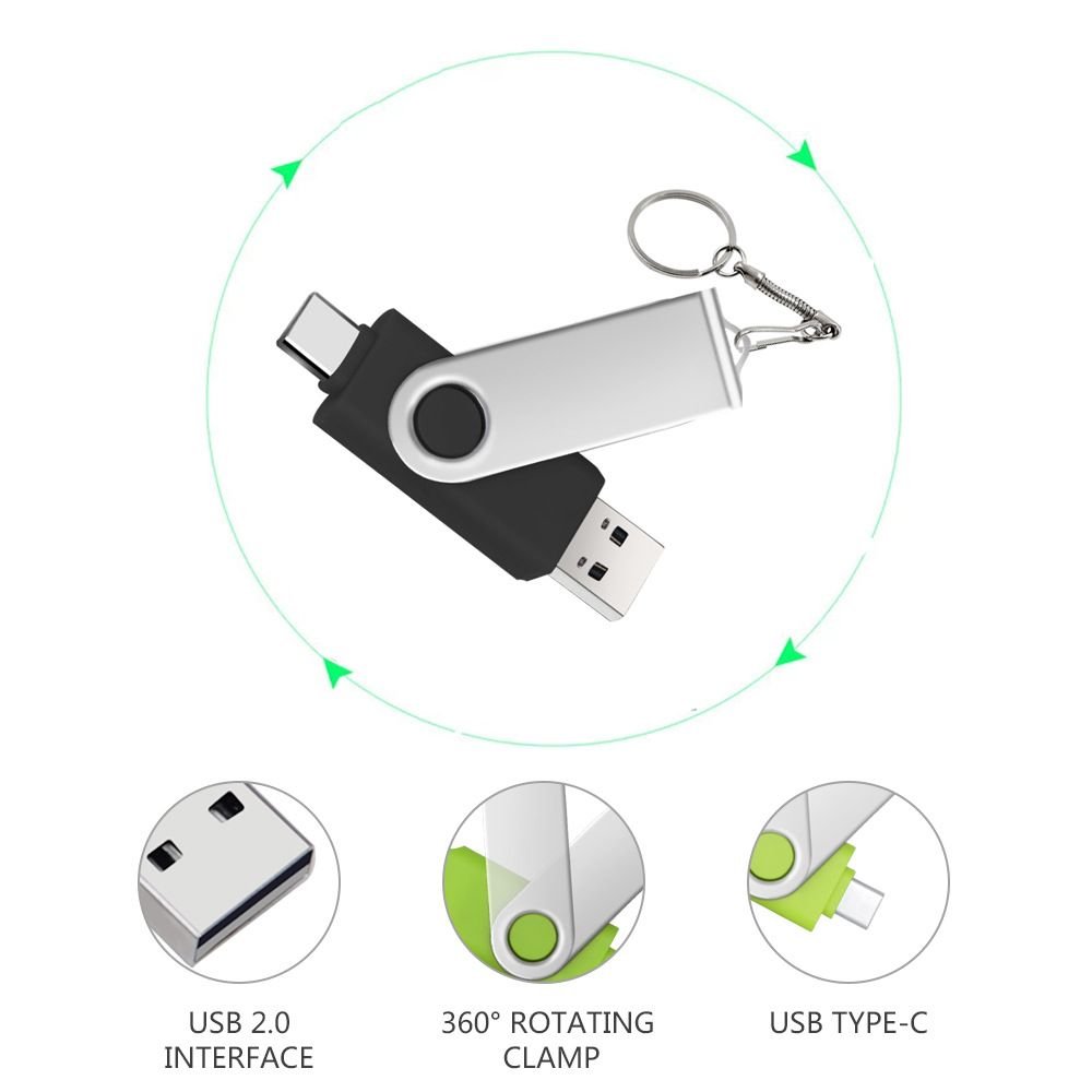 Home > Type-c Two-in-One USB Flash Drive Black 64G Computer Mobile Phone Dual-Use USB Flash Drive Rotating Creative USB 2.0 Business US