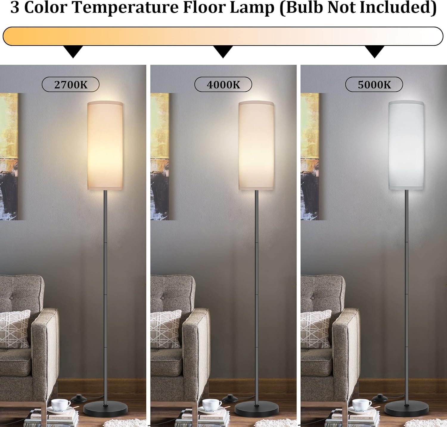 2.Tall Floor Lamp Suitable for E26 Bulbs: This standing lamp is designed with an E26 socket base, used with three-color temperature light bulbs(Bulb Not Included), allowing you to adjust the lighting style according to your desired ambiance easily. Meet your requirements for different space illuminations.