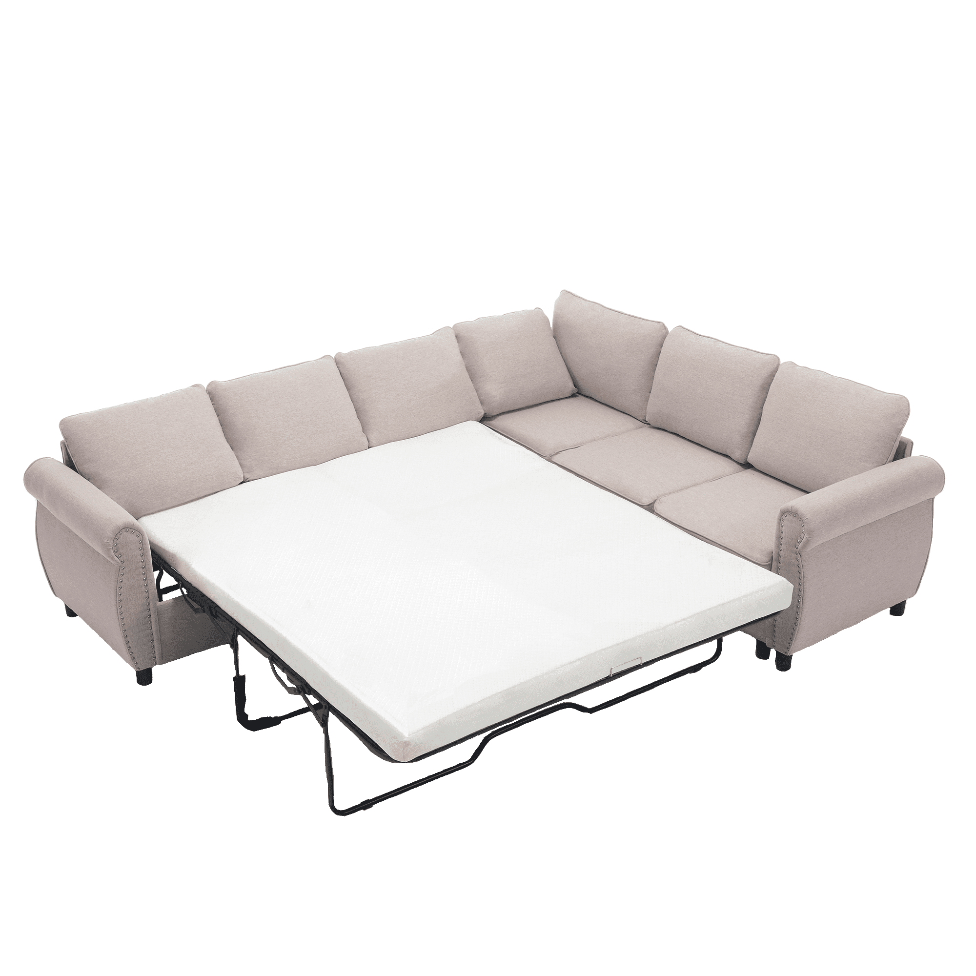 [NEW ARRIVED] [VIDEO PROVIDED] Sleeper Sofa, 2 in 1 Pull Out Couch Bed,6 seater sofa bed, L Shaped Sleeper Sectional Sofa Couch,Riveted sofa