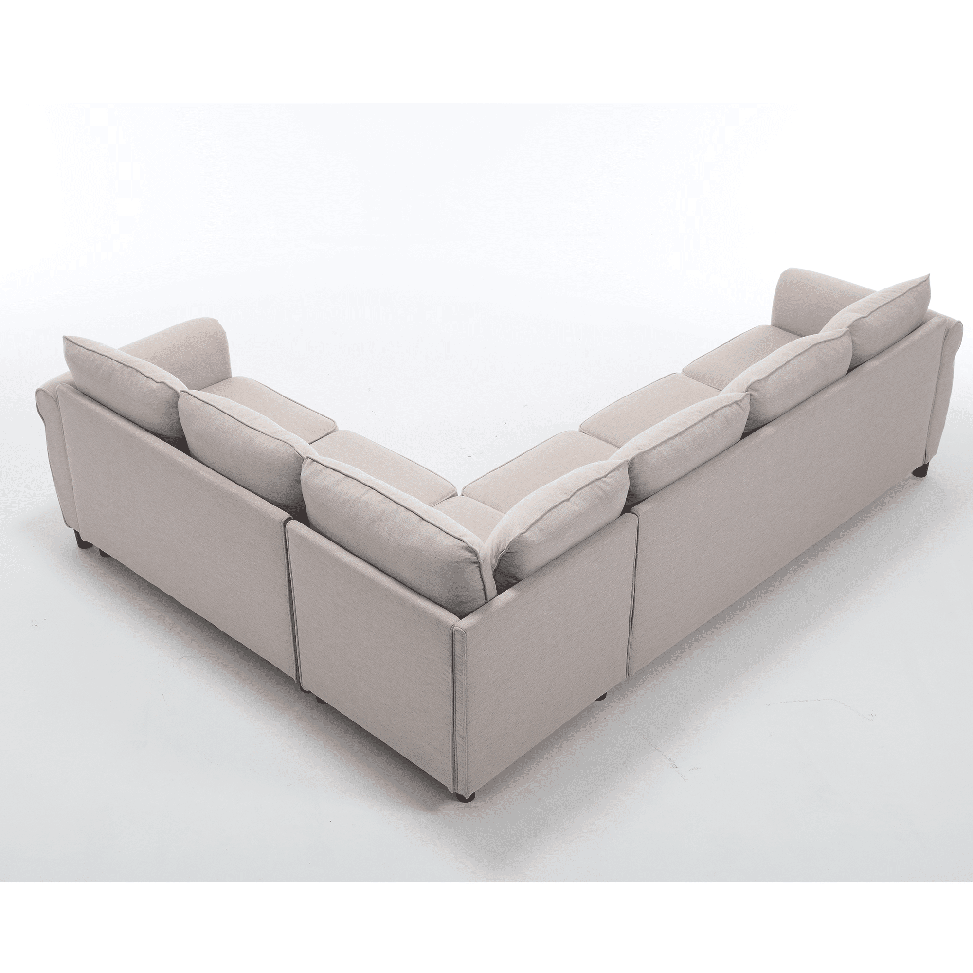 Make the most of your living room with this spacious and stylish sectional sofaThis spacious sectional sofa is perfect for entertaining and relaxingThis sectional sofa is the perfect blend of size, style, and comfort. Measuring 104"D x 81"W x33"H, it's spacious enough to fit your entire family and provide ample seating for all your guests. The L-shaped design allows you to pull out the loveseats part in the middle to form a bed, increasing the space utilization of your living room. The sofa is made of high-quality materials including a sturdy wooden frame, metal legs, and soft polyester upholstery fabric. The seating experience is enhanced with spring packs, high-density sponge, and removable backrest cushions.