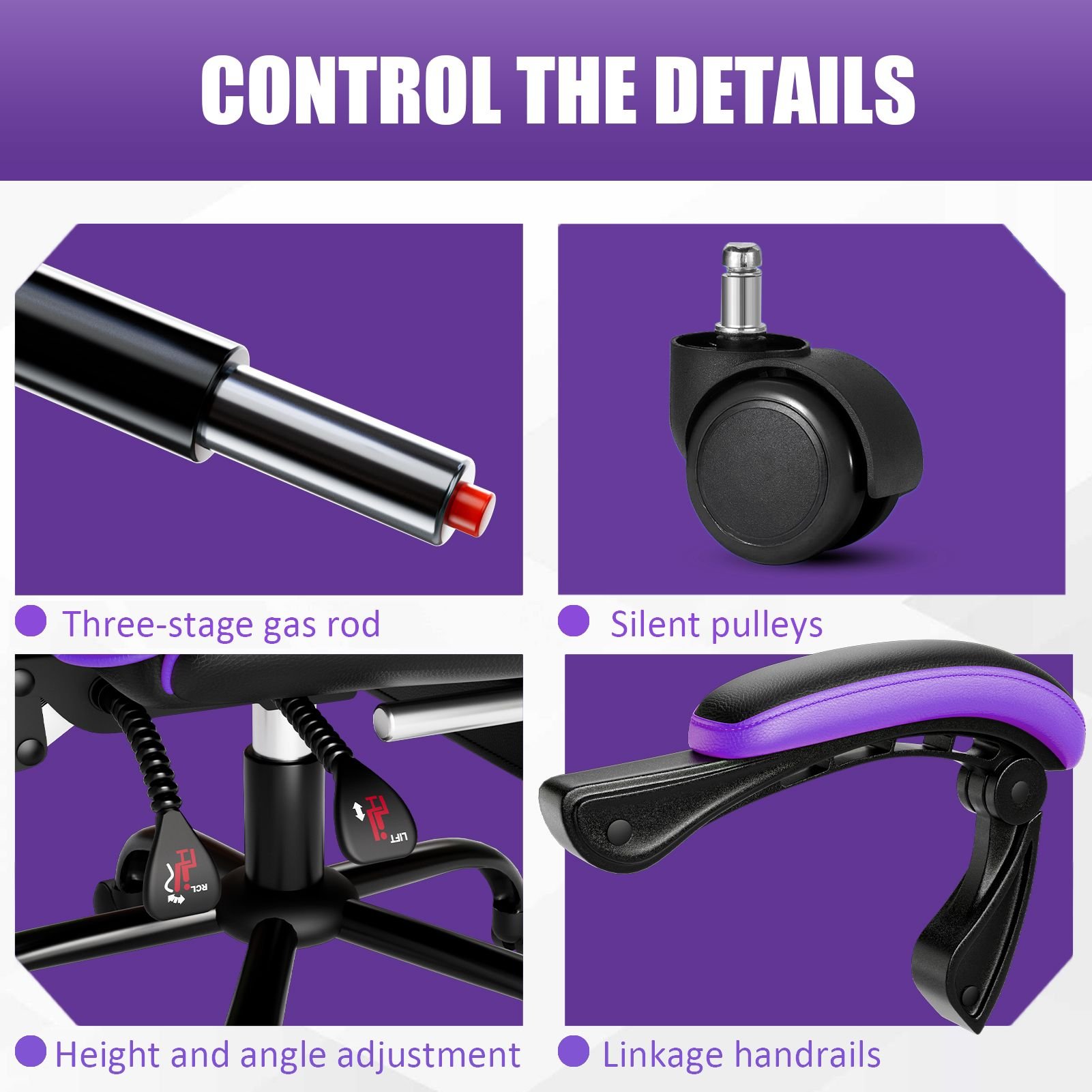 2.Our gaming computer chair is extremely stable with its sturdy one-piece alloy frame and heavy-duty anti-tip axle. The BIFMA-certified heavy-duty metal base coupled with 360-degree swiveling and smooth-rolling rubber castors allow you to effortlessly move the pc gaming chair without making any noise or scratching the floor.