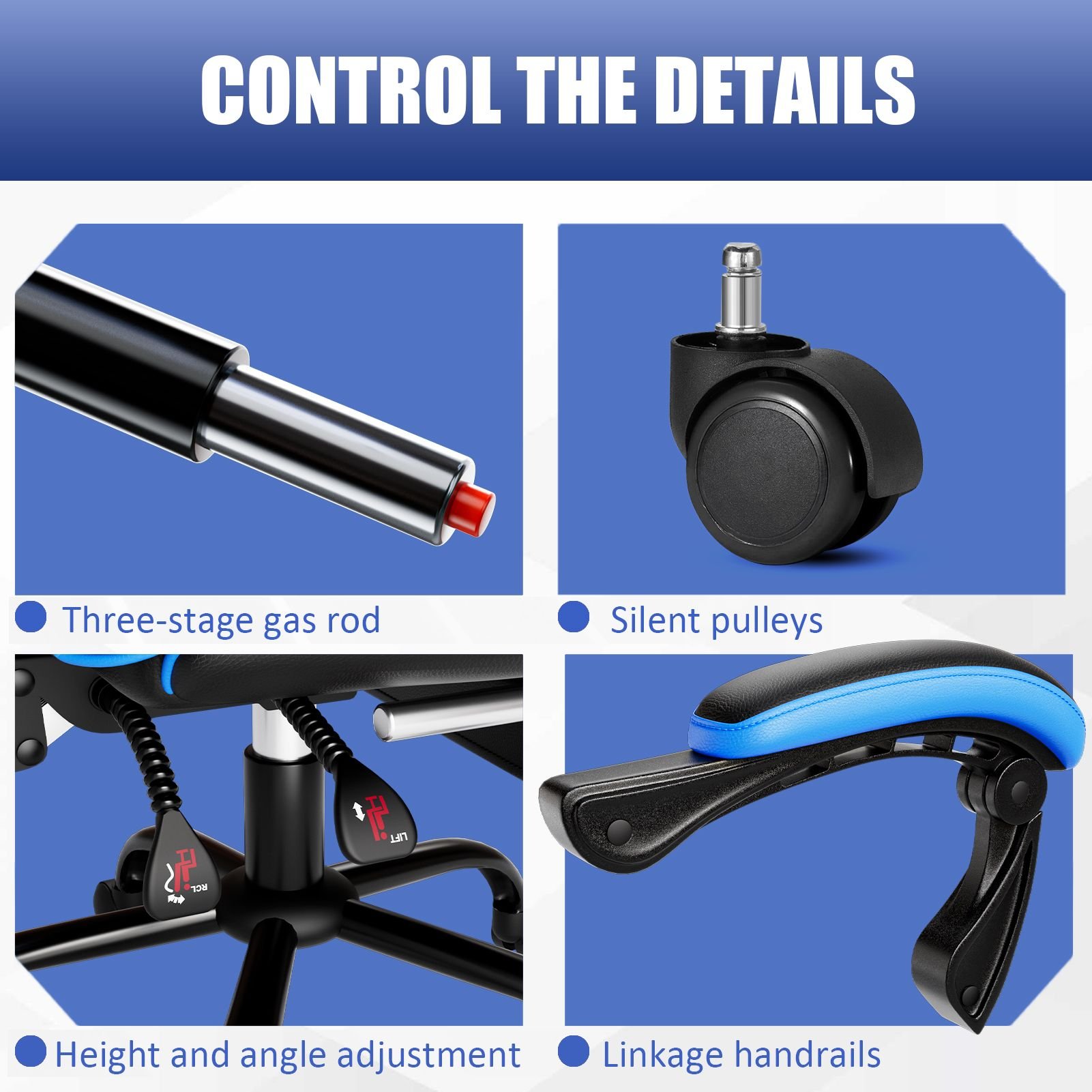 2.Our gaming computer chair is extremely stable with its sturdy one-piece alloy frame and heavy-duty anti-tip axle. The BIFMA-certified heavy-duty metal base coupled with 360-degree swiveling and smooth-rolling rubber castors allow you to effortlessly move the pc gaming chair without making any noise or scratching the floor.