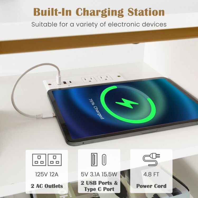 3.Perfect Charging Station: Keep your devices powered with the integrated charging station in the entertainment center, which offers 2 USB A ports and USB C port at 5V 3.1A 15.5W, as well as 2 AC outlets at 125V 12A for quick charging.