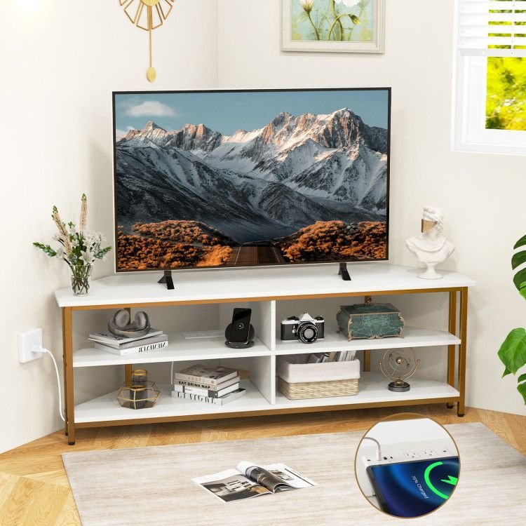 Home > 3-Tier Corner TV Stand for TVs up to 65 Inches with Charging Station