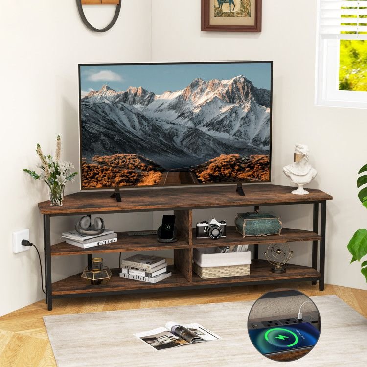 5.Practical Corner Design: Maximize your room's potential with the cleverly designed corner TV console table that fits seamlessly into any corner in your living room or bedroom, offering a stylish solution without sacrificing valuable living space.