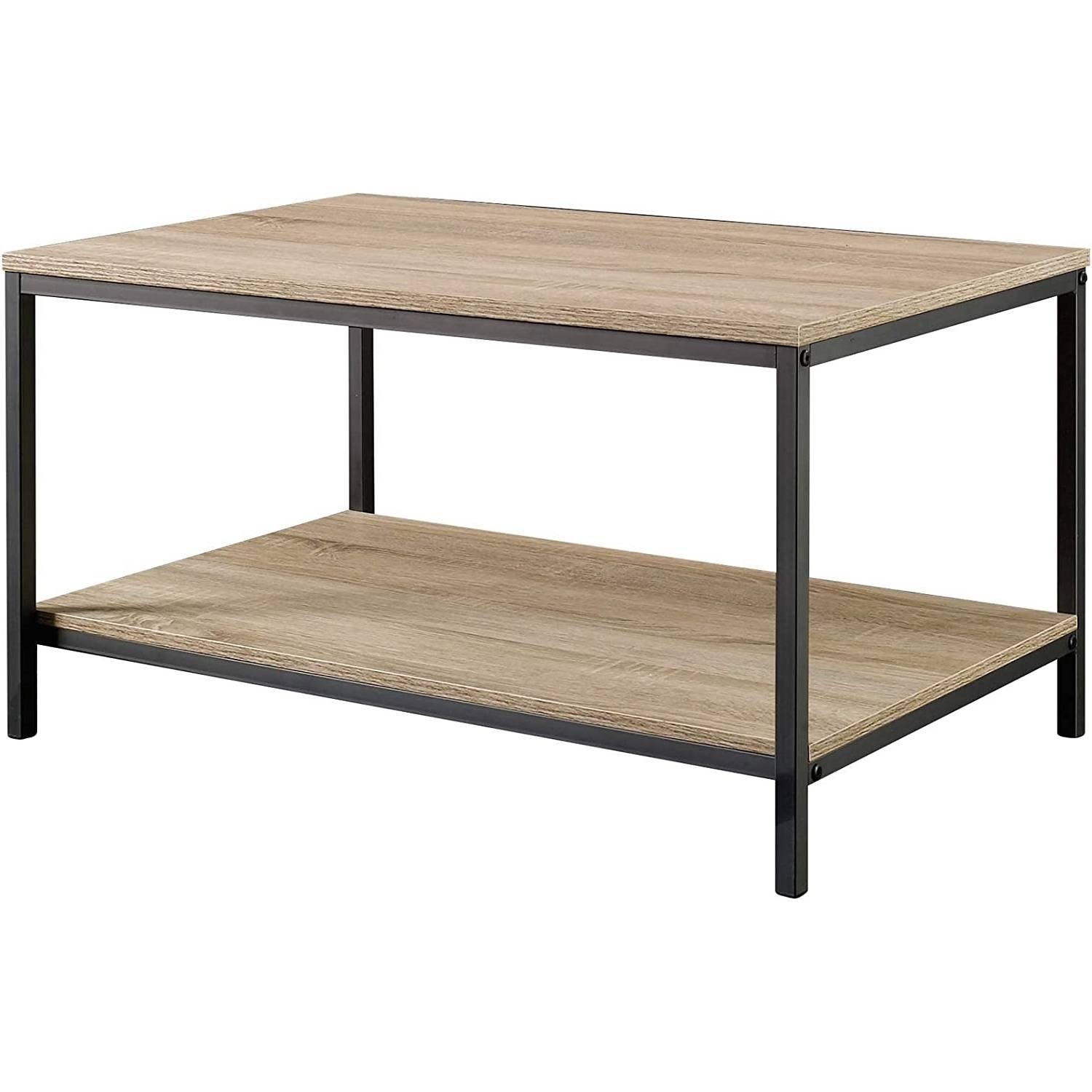 Modern Industrial 2-Tier Coffee Table in Rustic Light Oak Wood Finish Modern Industrial 2-Tier Coffee Table in Rustic Light Oak Wood Finish Modern Industrial 2-Tier Coffee Table in Rustic Light Oak Wood Finish