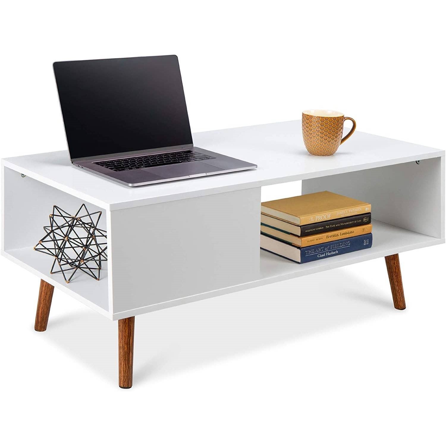 Modern Mid-Century Style Coffee Table Living Room Storage in White Brown Wood