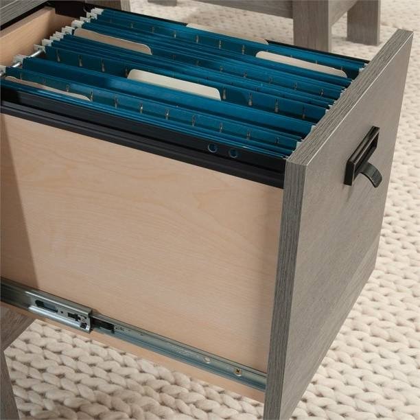 • 2 file drawers with full extension slides hold letter-size hanging files
