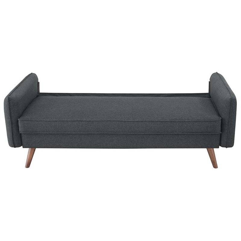 • Modern Grey Fabric Upholstered Sofa with Mid-Century Style Wood Legs