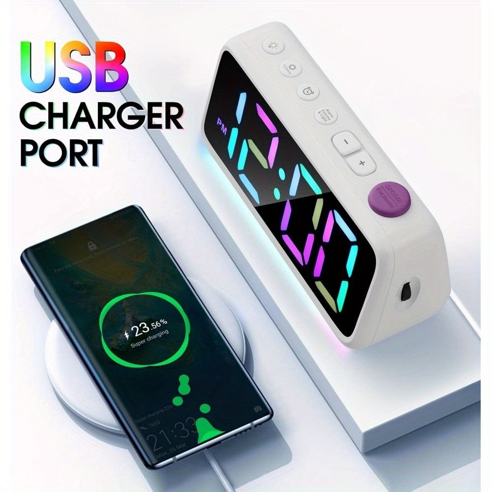 Home > RGB Digital Alarm Clock for Bedroom, Super Loud for Heavy Sleepers, Small Bedside Clock with LED Display, USB Charger