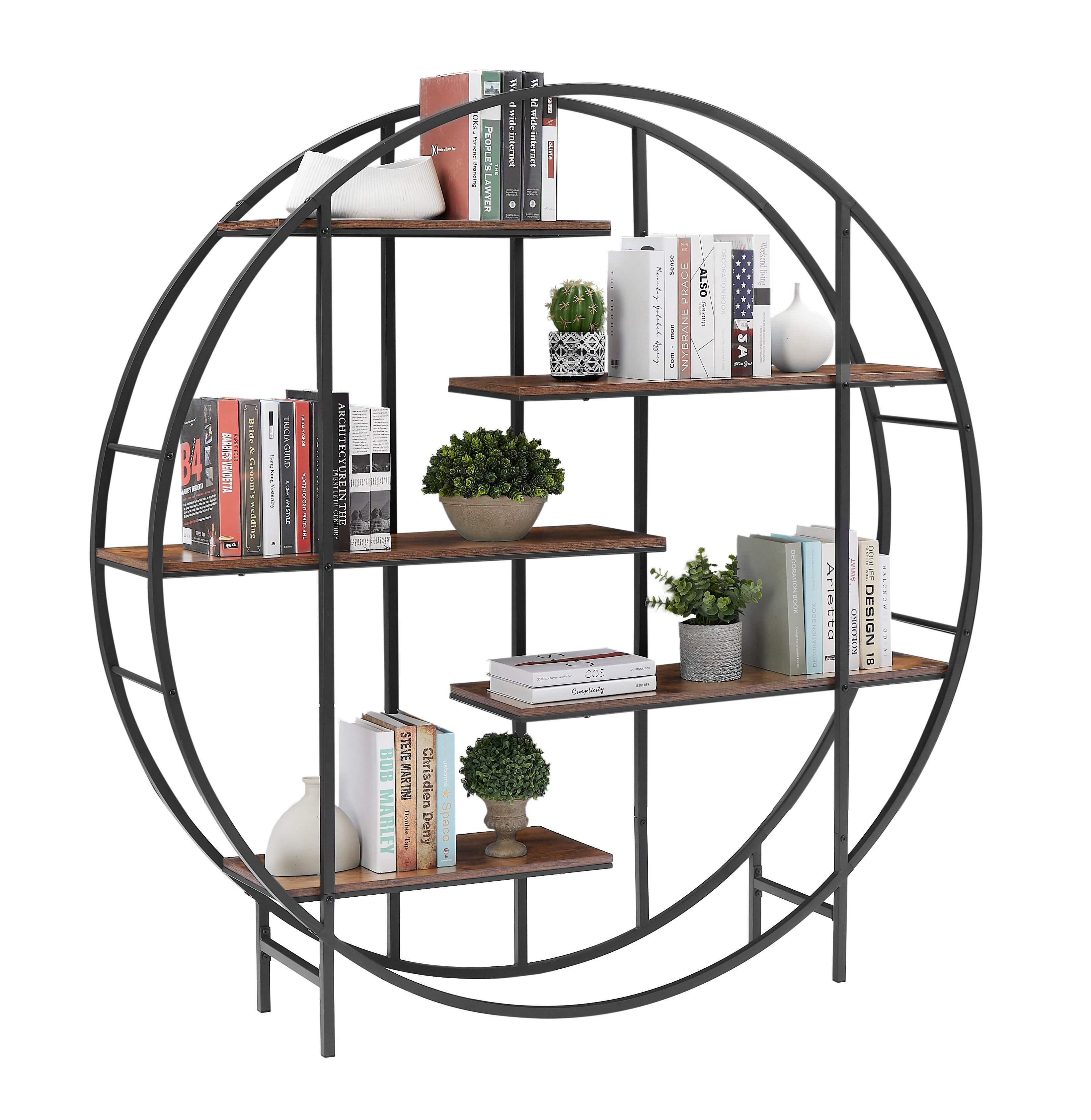 Round 5-Tier Metal Plant Stand bookcase storage rack; Indoor Living Room Terrace Garden Balcony Display Stand